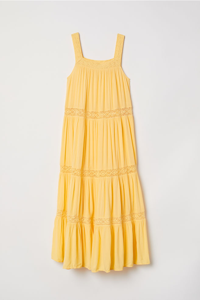 To κίτρινο, που είναι και τάση φέτος, είναι μία από τις πιο ωραίες αποχρώσεις που δυστυχώς μας χλωμιάζουν. Έτσι αν φοβάστε να το φορέσετε πριν σας δει ο ήλιος, τώρα μπορείτε να το εντάξετε και με το παραπάνω στο καθημερινό σας ντύσιμο. Θα σας πηγαίνει σίγουρα και θα αναδείξει τέλεια το μαύρισμά σας. Στη φωτογραφία: φόρεμα H&M, μπορείτε να το βρείτε εδώ.
