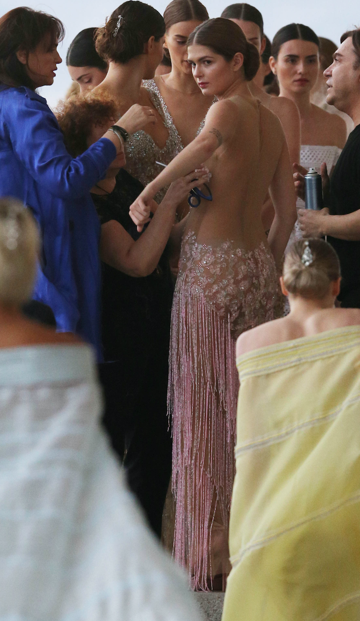 Το νεαρό μοντέλο λοιπόν έκανε την εμφάνισή του στην πασαρέλα και εντυπωσίασε το κοινό με τις αναλογίες αλλά και τη σέξι δημιουργία Υψηλής Ραπτικής που φόρεσε. Πιο συγκεκριμένα λοιπόν η Σίλια Κριθαριώτη επέλεξε για την Αμαλία ένα μάξι see through φόρεμα κεντημένο με κρύσταλλα και άλλα διακοσμητικά στοιχεία. Αν και μάξι, ήταν πολύ σέξι γιατί όπως είπαμε ήταν διαφανές και άφηνε ολόκληρη την πλάτη της ακάλυπτη. Επιπλέον η στενή γραμμή του αγκάλιαζε το σώμα της Αμαλίας και την κολάκευε πάρα πολύ. Δεν είναι μία υπέροχη εμφάνιση;