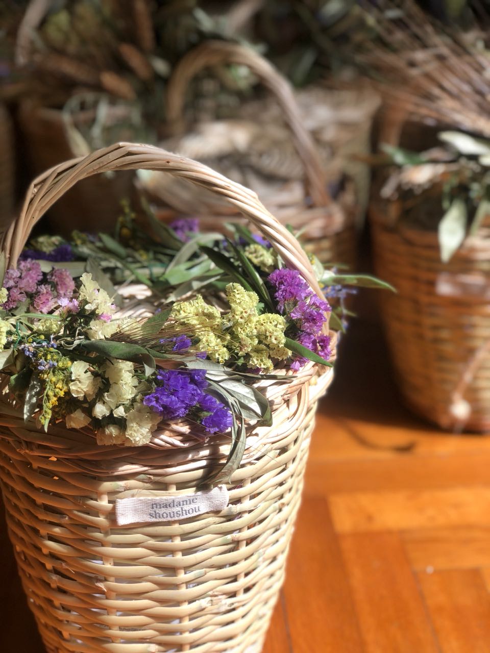 Ένα shoushou girl ντυμένο στα λευκά παρέδωσε ψάθινα καλαθάκια σε αγαπημένους φίλους της madame shoushou. Τα καλαθάκια ήταν γεμάτα φρέσκα λουλούδια, την σύνθεση των οποίων επιμελήθηκαν τα ανθοπωλεία Πετρίδης, ενώ μέσα βρισκόταν η κάρτα που προέτρεπε τους φίλους του brand να μπουν στο νέο site και να γεμίσουν το καλάθι τους.