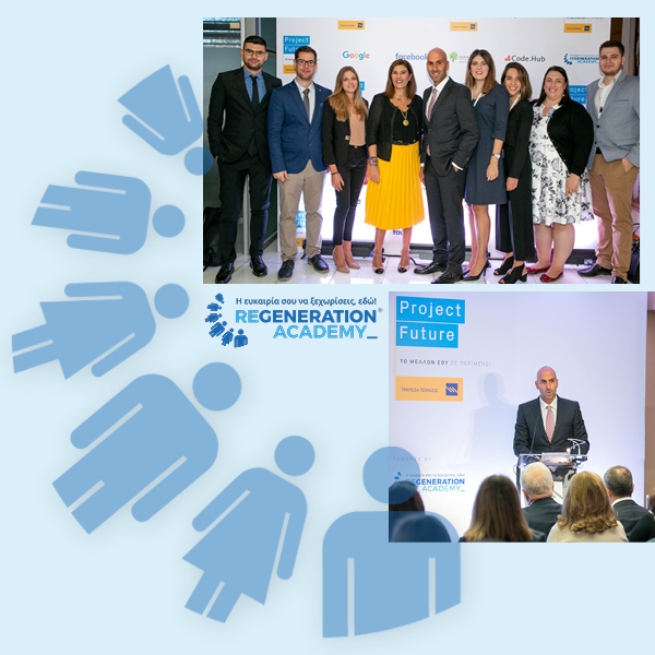 Το ReGeneration Academy, ο πυλώνας εξειδικευμένης εκπαίδευσης του ReGeneration, αποτελεί το στρατηγικό συνεργάτη του νέου προγράμματος “Project Future” της Τράπεζας Πειραιώς. Αξιοποιώντας την τεχνογνωσία του ReGeneration αλλά και αναγνωρίζοντας τη δυναμική του ανάπτυξη και τον διαρκώς αυξανόμενο κοινωνικό του αντίκτυπο, η πρώτη Τράπεζα της Ελλάδας, τίμησε με την εμπιστοσύνη της το ReGeneration για το σχεδιασμό του “ProjectFuture”, γεγονός που καθιστά τη συνεργασία ένα σημαντικό σταθμό για το πρωτοποριακό πρόγραμμα αμειβόμενης απασχόλησης.