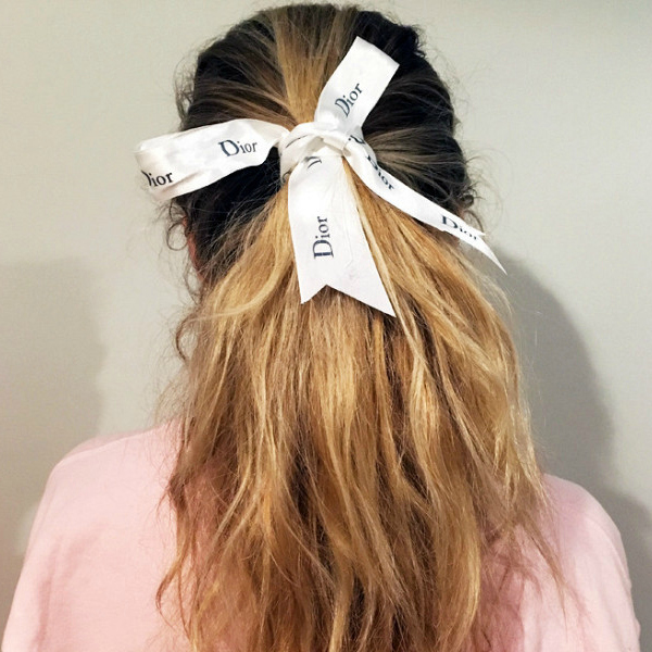 Οι κορδέλες στα μαλλιά είναι in αυτή τη σεζόν, με το βελούδο και το σατέν να είναι οι πιο δημοφιλείς εκδοχές τους. Τώρα μπορείτε να συνδυάσετε τα δύο αυτά trends, επιλέγοντας μία λευκή κορδέλα με εμφανές το λογότυπο, την οποία θα αποκτήσετε εύκολα αν αγοράσετε κάτι από το εκάστοτε brand.