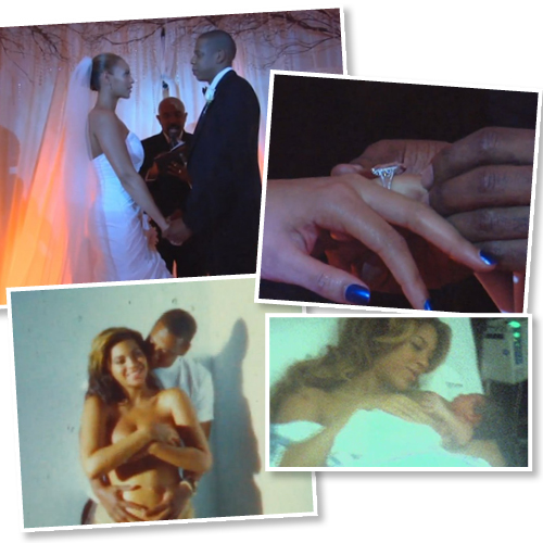 Στο 6λεπτο απόσπασμα βλέπουμε πλάνα από το γάμο τους που έγινε το 2008 για πρώτη φορά, διάφορες ευτυχισμένες τους στιγμές από διακοπές, το πανάκριβο μονόπετρο της σταρ αλλά και την Queen B γυμνή με φουσκωμένη κοιλίτσα την περίοδο της πρώτης της εγκυμοσύνης. Επίσης, η 33χρονη απεικονίζεται στο μαιευτήριο να κρατά στην αγκαλιά της την νεογέννητη τότε Blue Ivy, βάζοντας έτσι στη θέση τους όλους όσους υποστήριζαν ότι δεν είχε γεννήσει εκείνη την κόρη της.