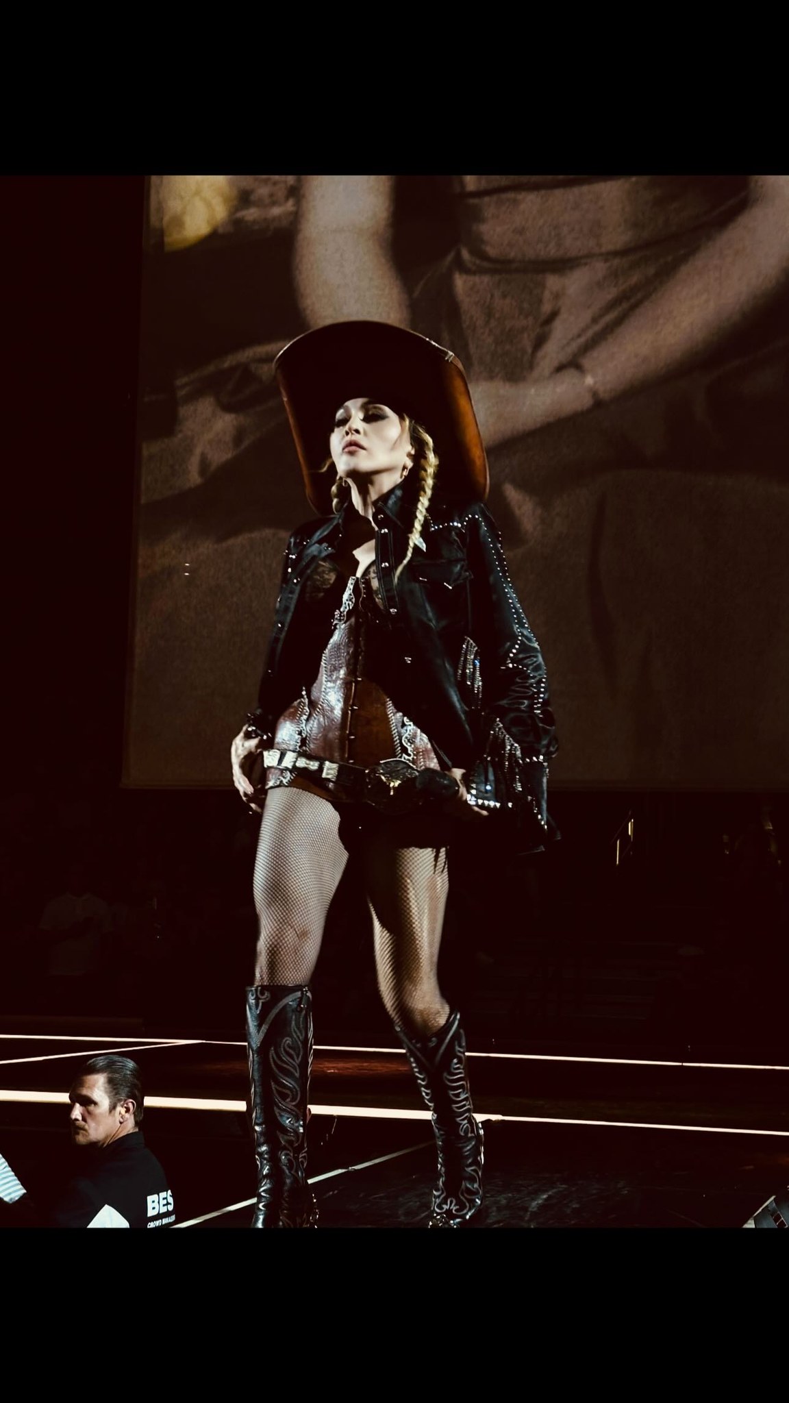 Επίσης, σε άλλη μία φωτογραφία που ανέβασε σε Insta Story έδειχνε επίσης εντυπωσιακή φορώντας μεγάλο καουμπόικο καπέλα, κορμάκι και διχτυωτό καλσόν που αναδείκνυε τα γυμνασμένα πόδια της. Η Madonna ενθουσίασε τους θαυμαστές της στο Λας Βέγκας όπου τραγούδησε την 1η και 2η Μαρτίου.