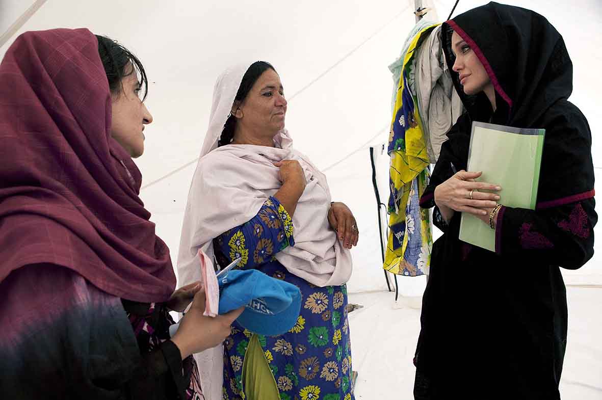 Εκτός από την καλλιτεχνική της δραστηριότητα, το 2001 η Angelina ονομάστηκε Πρέσβειρα Καλής Θέλησης της Ύπατης Αρμοστείας των Ηνωμένων Εθνών για τους Πρόσφυγες και ταξιδεύει σε πολλές χώρες που έχουν πληγεί από τη φτώχεια.