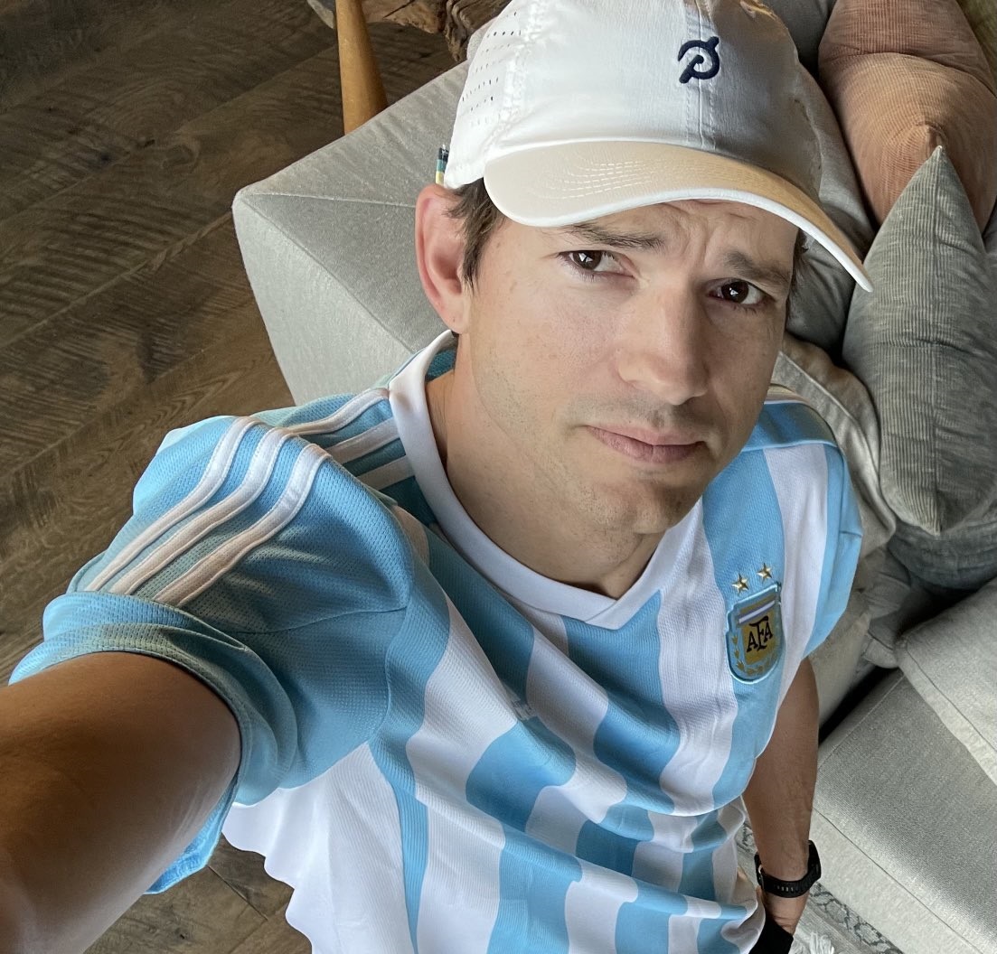 Ανάμεσα στους εκατομμύρια οπαδούς της Αργεντινής είναι και πάρα πολλοί διάσημοι που έσπευσαν να εκφράσουν τη στήριξή τους στην… ομάδα της καρδιάς τους. Ένας από αυτούς και ο Ashton Kutcher, που φωτογραφήθηκε με φανέλα της Εθνικής Αργεντινής για χάρη του Messi.