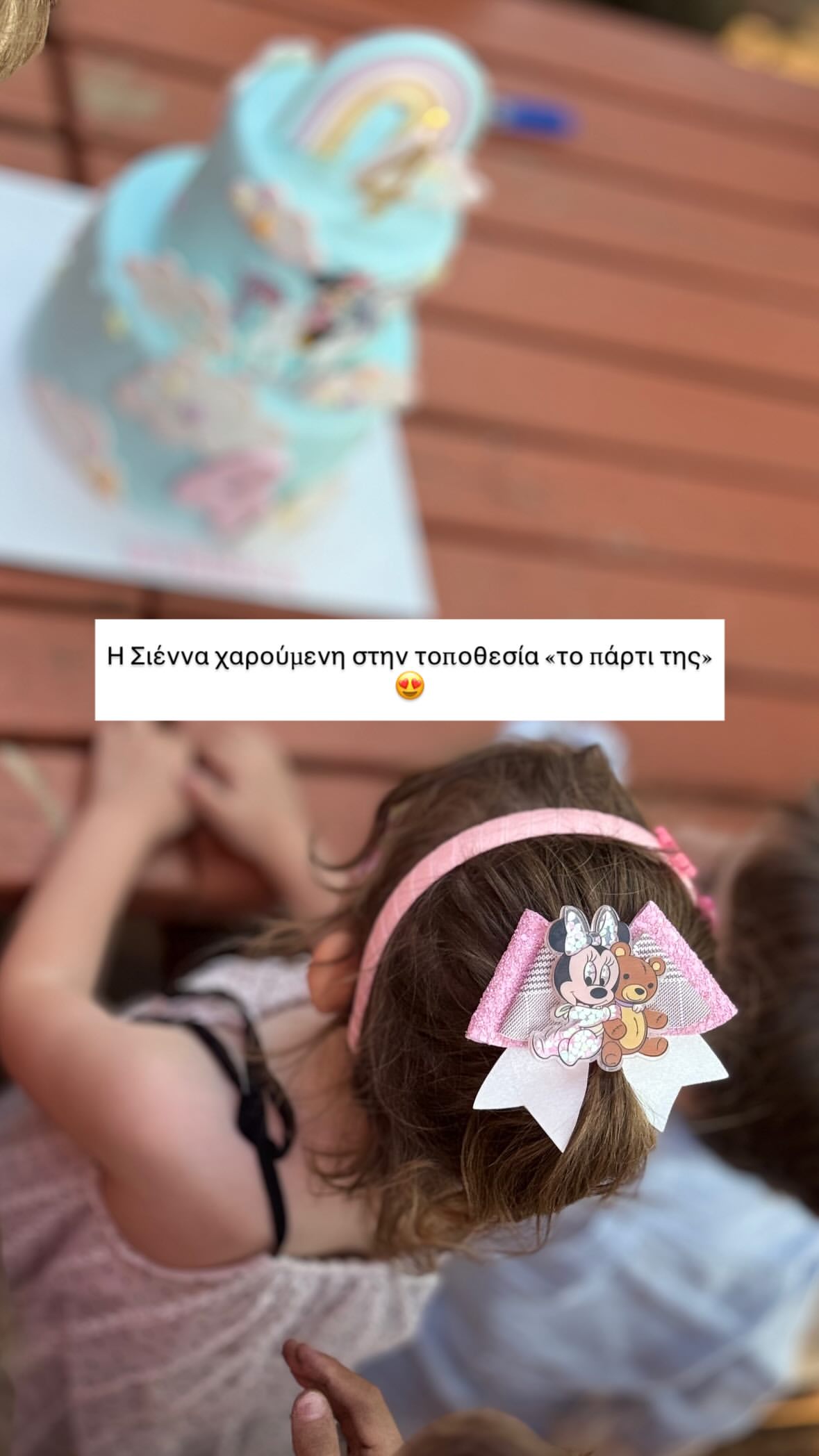 Έτσι λοιπόν, το απόγευμα της Παρασκευής 13 Ιουνίου, η Σιέννα μαζί με τους γονείς της και τους φίλους της γιόρτασε τα γενέθλιά της, σβήνοντας τα κεράκια από μια εντυπωσιακή τούρτα, που ετοίμασε η Άντα Λιβιτσάνου. Εξίσου εντυπωσιακός ήταν και ο στολισμός του πάρτι, το οποίο είχε θέμα τη Μίνι Μάους και τον μονόκερο.