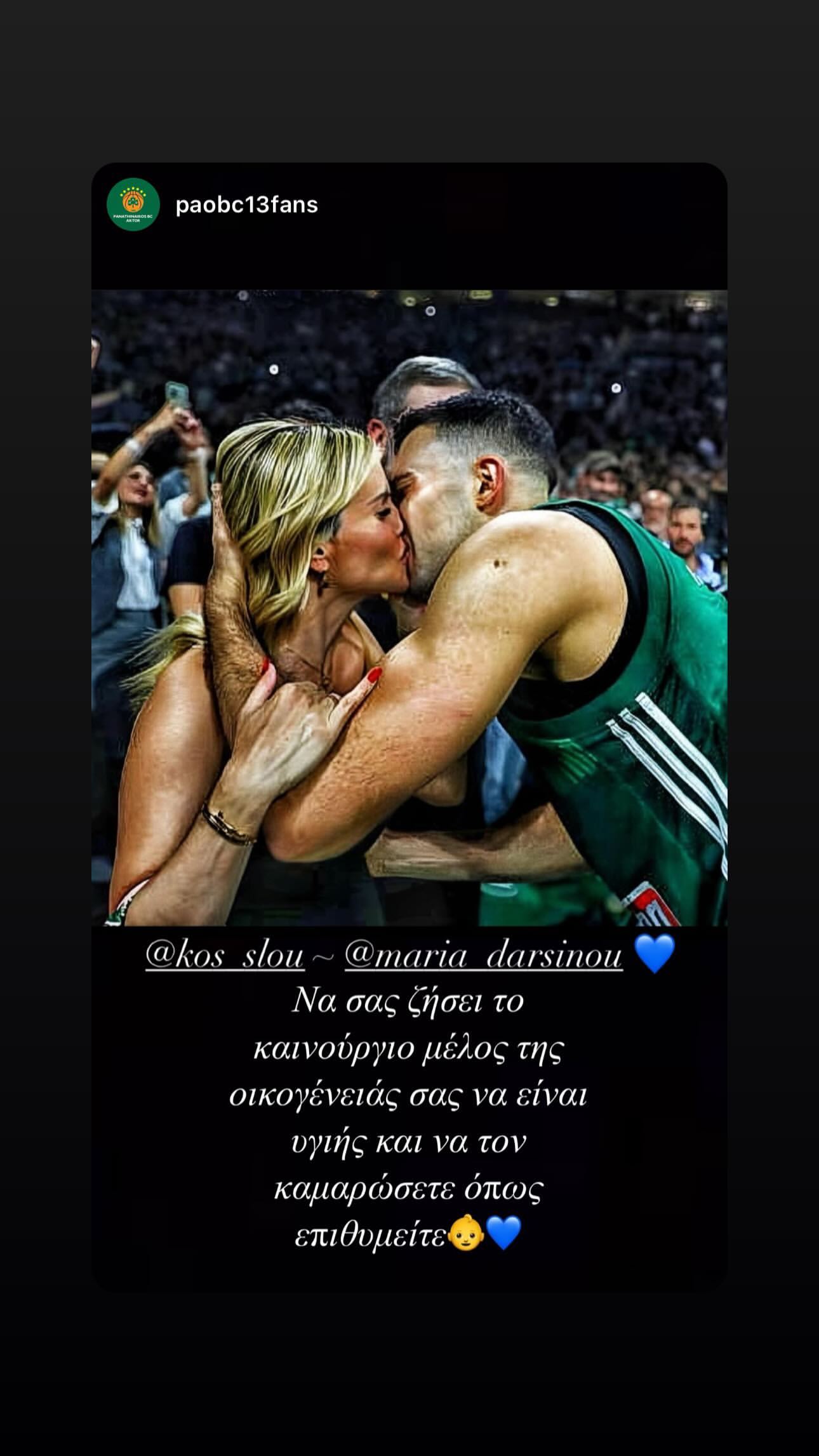 Η ευχάριστη είδηση έγινε γνωστή μέσα από το Instagram όπου η ευτυχισμένη μανούλα αναδημοσίευσε story με ευχές που δέχτηκε από φίλους του Παναθηναϊκού.