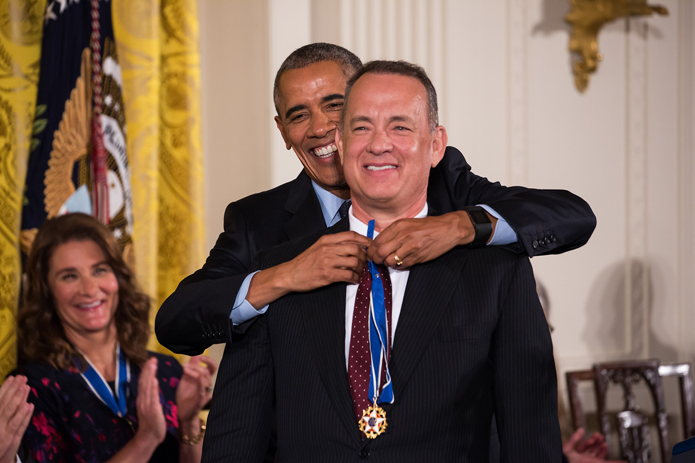 Ο πρόεδρος των Η.Π.Α Barack Obama βραβεύει τον ηθοποιό Τom Hanks με το Προεδρικό Μετάλλιο της Ελευθερίας. (Presidential Medal of Freedom). Photo by Cheriss May/NurPhoto via Getty Images
