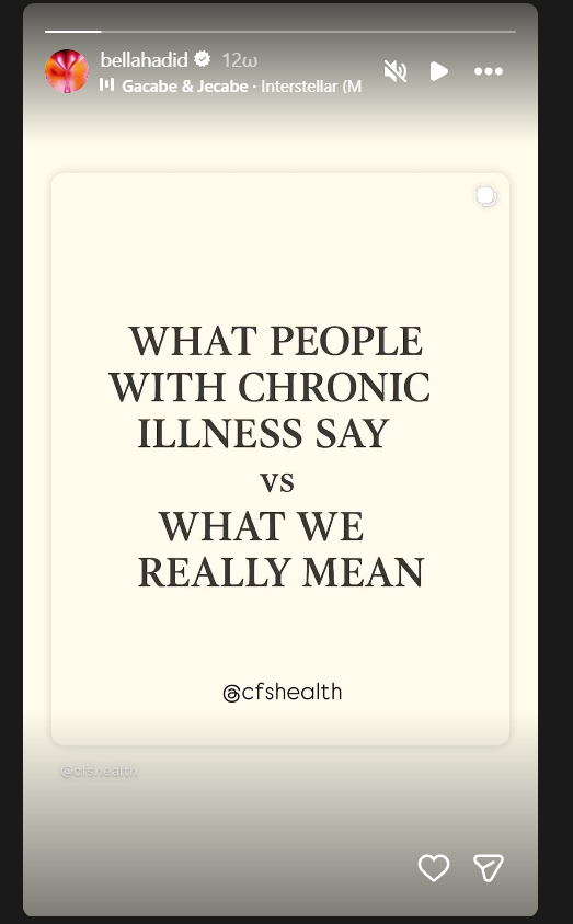 Στη δεύτερη ανάρτηση, ένα re-share από την influencer Alexandra Wildeson σχετικά με τη «δυαδικότητα» της χρόνιας ασθένειας, η Hadid μίλησε ανοιχτά για το «ιατρικό άγχος» της.