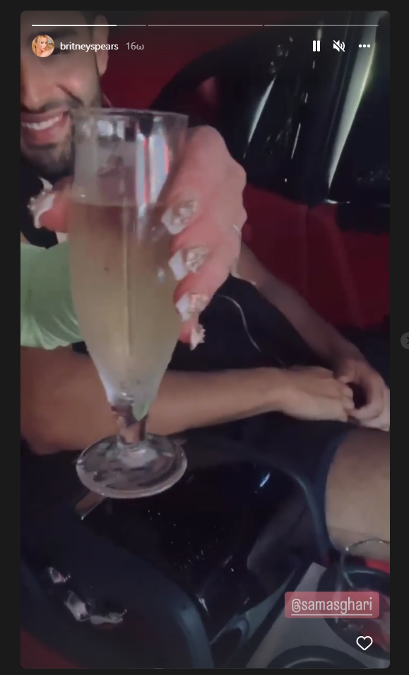 Ενόψει του γάμου, η Britney Spears ανέβασε ένα βίντεο όπου η ίδια και ο αρραβωνιαστικός της βρίσκονται σε μια Rolls-Royce, όπου επιδεικνύει το ενδεχομένως γαμήλιο μανικιούρ της και ποτήρια σαμπάνιας.