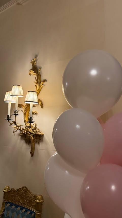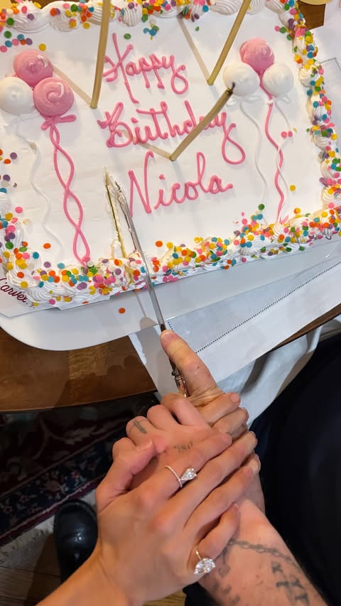 Μοιράστηκε επίσης στιγμιότυπα με ροζ και λευκά μπαλόνια που διακοσμούσαν το σπίτι, καθώς και φωτογραφίες όπου κρατούσε το χέρι του Brooklyn την ώρα που έκοβε την τούρτα της.