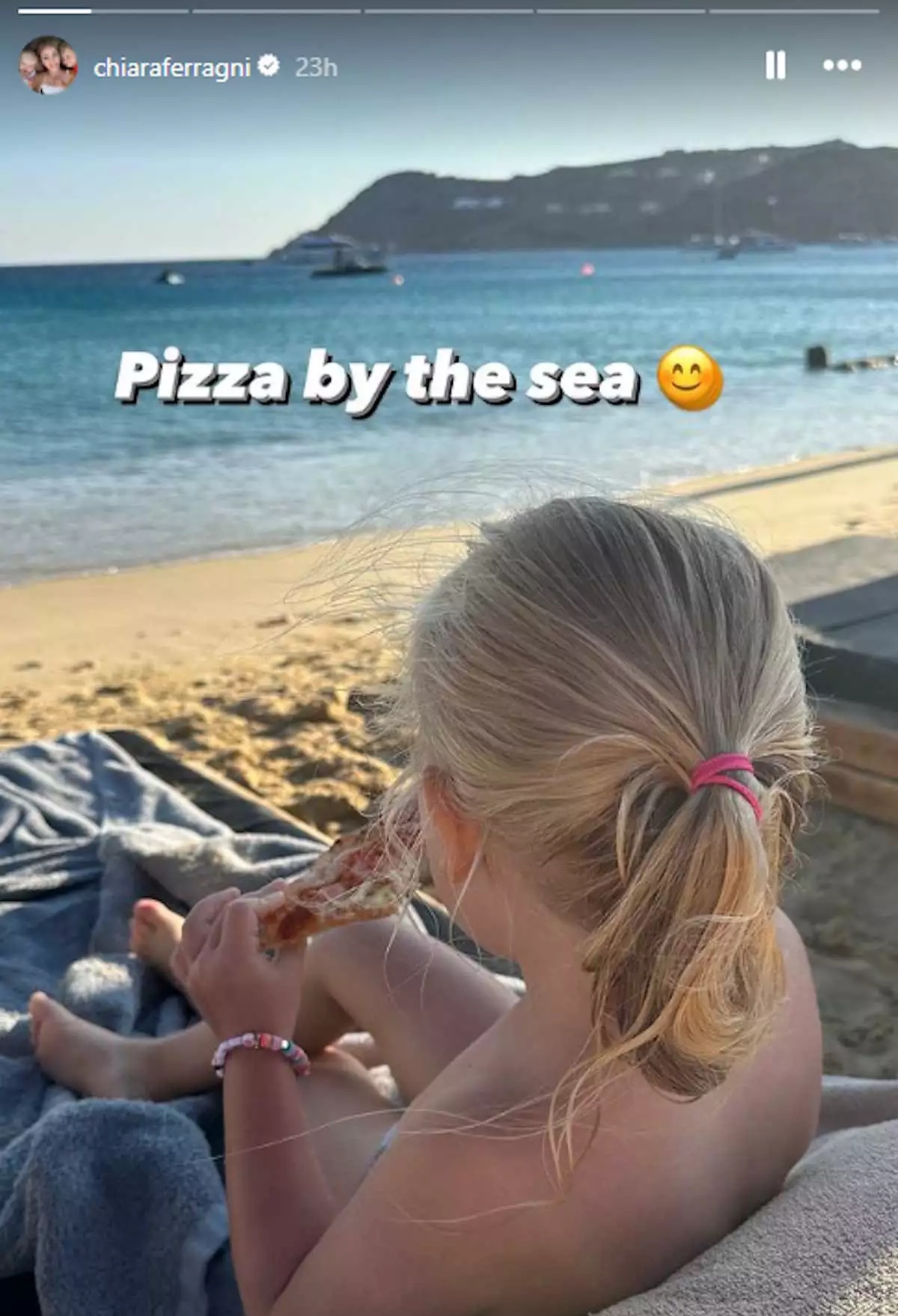 Συγκεκριμένα, η Chiara Ferragni… τρώει πίτσα στην θάλασσα, ποζάρει ανέμελα και χαλαρά ενώ δέχεται χιλιάδες μηνύματα από τους θαυμαστές της,, οι οποίοι της τονίζουν πόσο της… πάει το ελληνικό καλοκαίρι.