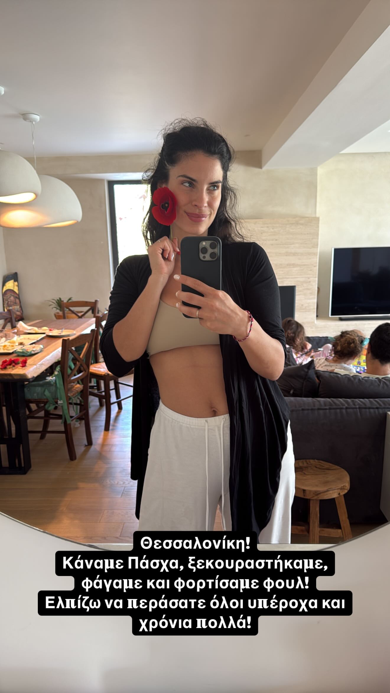 «Θεσσαλονίκη! Κάναμε Πάσχα, ξεκουραστήκαμε, φάγαμε και φορτίσαμε φουλ! Ελπίζω να περάσατε όλοι υπέροχα και χρόνια πολλά!» έγραψε χαρακτηριστικά στην ανάρτησή της, ποζάροντας στη φωτογραφία κρατώντας μία κόκκινη παπαρούνα.