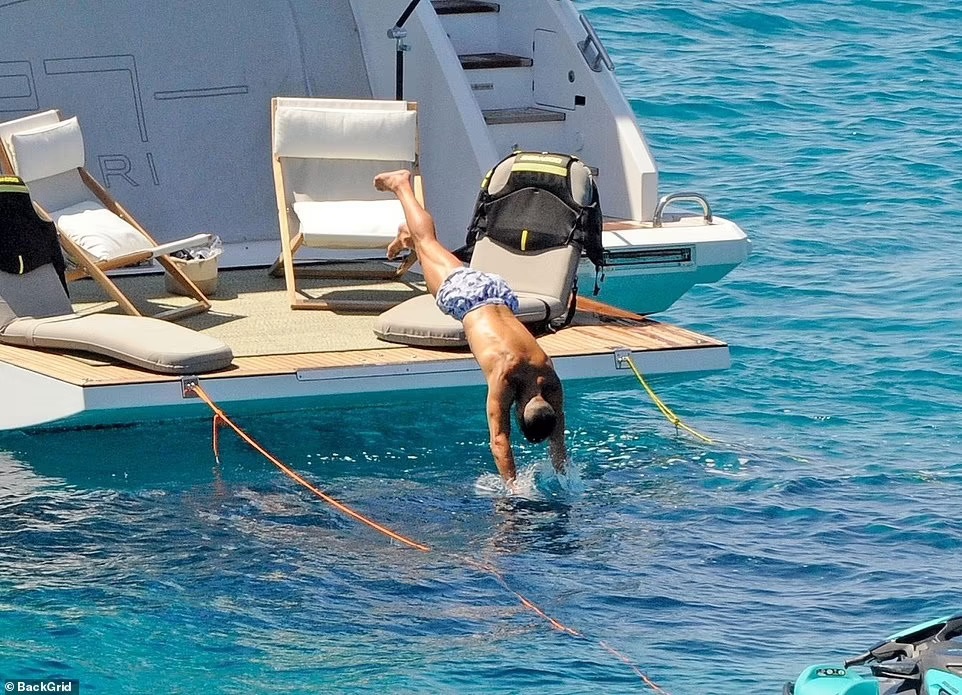 Έκαναν όλοι μαζί ηλιοθεραπεία και μετά ο Cristiano ανέβηκε στο jet ski και έκανε τις βόλτες του πολύ επιτυχημένα! H Georgina έκανε βουτιές συνέχεια για να δροσιστεί και αμέσως μετά από κάθε βουτιά ακολουθούσε ντους για να απομακρύνει το αλάτι από το δέρμα της και τα μαλλιά της.