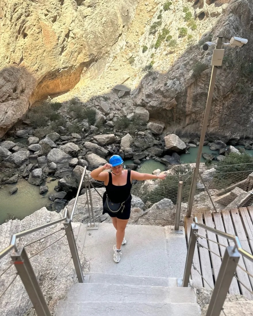 «Πεζοπορία 3 ωρών στο Caminito del ray Ή αλλιώς «Το μονοπάτι του Βασιλιά» 🇪🇸. Μία εμπειρία ζωής που σου κόβει την ανάσα!», έγραψε η παρουσιάστρια στη λεζάντα της ανάρτησής της.