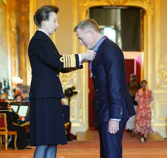🎖️The Princess Royal presents Daniel Craig with The Order of St Michael and St George – the same honour held by his character James Bond – in recognition of his outstanding contribution to film and theatre. pic.twitter.com/X20TP6BogL