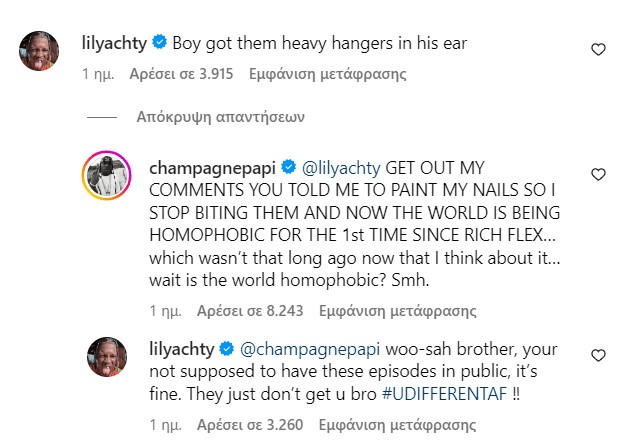 Συνεχίζοντας να αστειεύεται με τον Drake, το όνομα του οποίου είναι Aubrey Graham, ο Lil Yachty απάντησε: “Αδελφέ, δεν πρέπει να έχεις αυτά τα επεισόδια δημόσια, είναι μια χαρά. Απλά δεν σε καταλαβαίνουν αδερφέ #UDIFFERENTAF ‼️” Δεν είναι σαφές αν το σχόλιο του Drake ήταν για πλάκα.