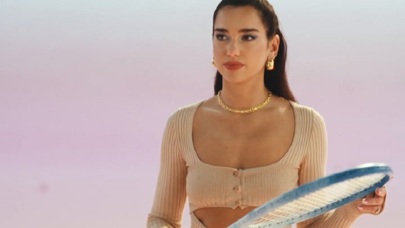 H Dua συμπρωταγωνιστεί στο διαφημιστικό με το αστέρι του τένις, τη 19χρονη Βρετανίδα Emma Raducanu. H popstar προσπαθεί να μιμηθεί την τεχνική της δασκάλας της, αλλά τελικά μένει στο να κουνά μάταια τη ρακέτα και να σκύβει για να μην την πετύχουν οι μπάλες.