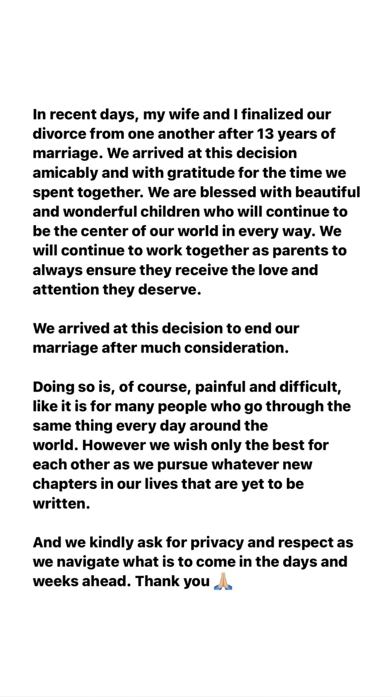 “Φτάσαμε σε αυτήν την απόφαση φιλικά και με ευγνωμοσύνη για τον χρόνο που περάσαμε μαζί. Είμαστε ευλογημένοι με όμορφα και υπέροχα παιδιά που θα συνεχίσουν να είναι το κέντρο του κόσμου μας από κάθε άποψη. Θα συνεχίσουμε να εργαζόμαστε μαζί ως γονείς για να διασφαλίζουμε ότι λαμβάνουν πάντα την αγάπη και την προσοχή που τους αξίζει” αναφερόταν μεταξύ άλλων στη δήλωση του Brady.