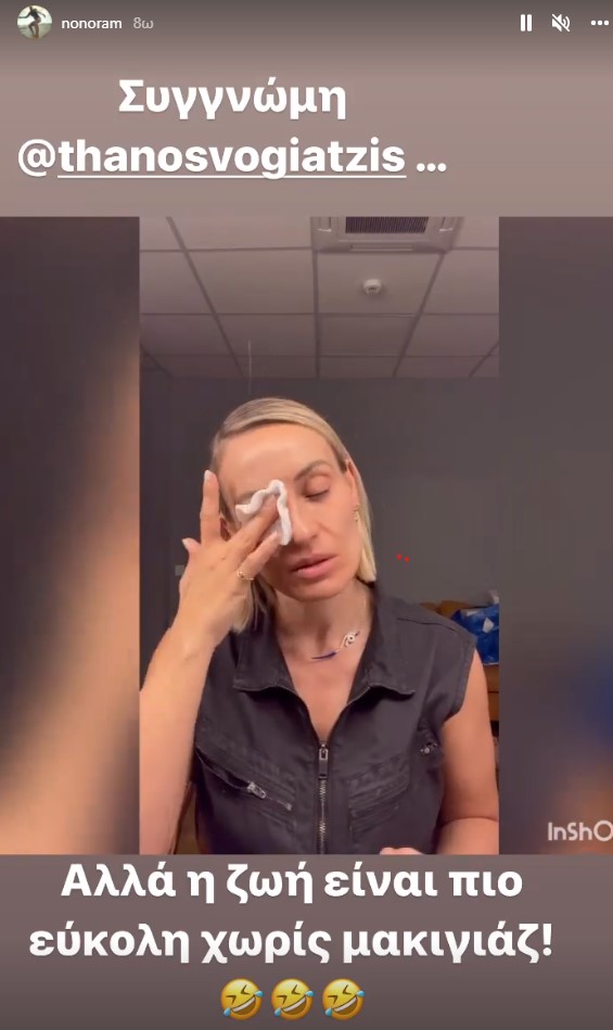 “Η ζωή είναι πιο εύκολη χωρίς μακιγιάζ”, γράφει η Ελεονώρα Μελέτη στη λεζάντα της φωτογραφίας.
