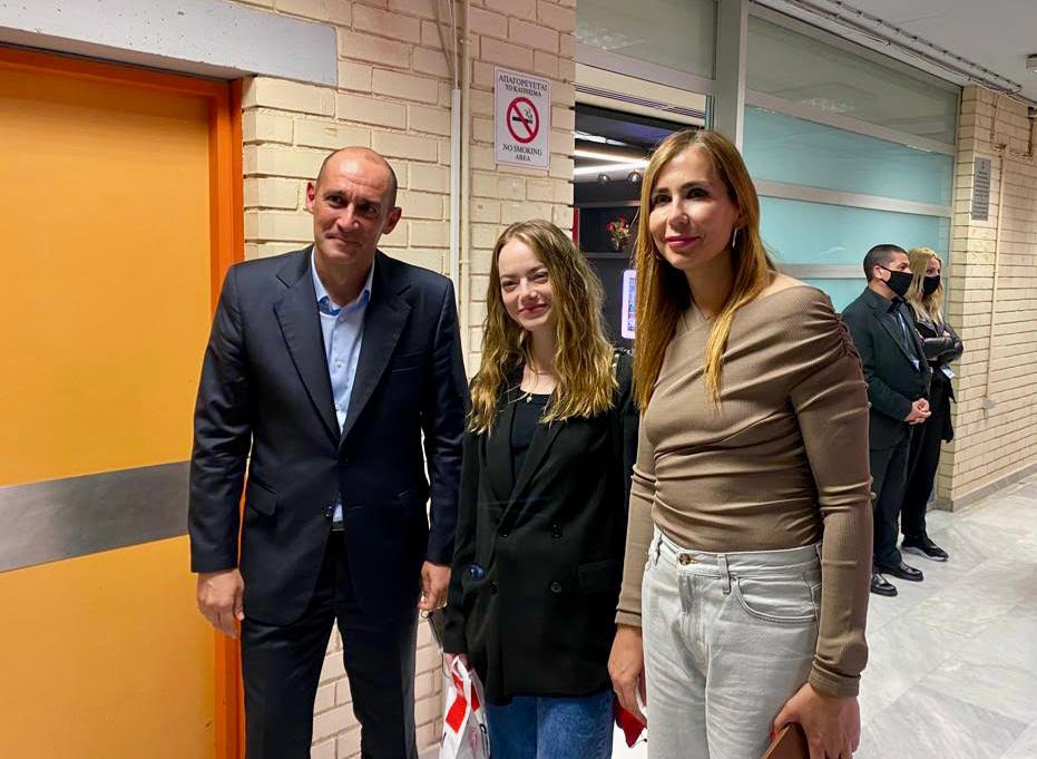 Στο περιθώριο του αγώνα οι πρόεδροι της ΚΑΕ Ολυμπιακός Παναγιώτης και Γιώργος Αγγελόπουλος συναντήθηκαν με την Emma Stone και τον Γιώργο Λάνθιμο και τους χάρισαν από μια φανέλα της ομάδας με τα ονόματα τους.