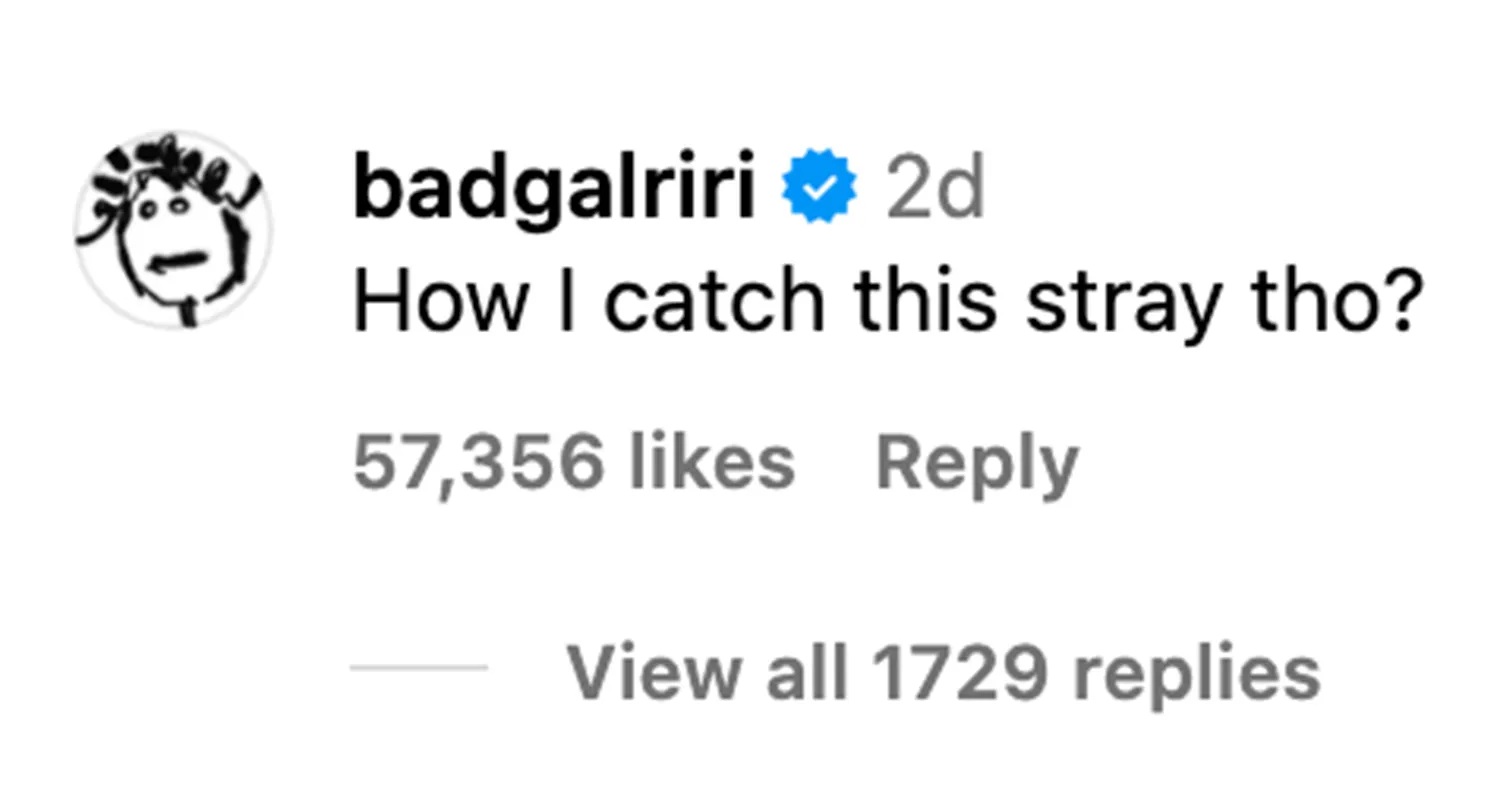 Η αντίδραση της Rihanna στη δημοσίευση έκανε τα social media να… ξεσηκωθούν ακόμη περισσότερο. «Είναι η Rih που σχολιάζει για μένα. Ούρλιαξα όταν το είδα», έγραψε ένας χρήστης.