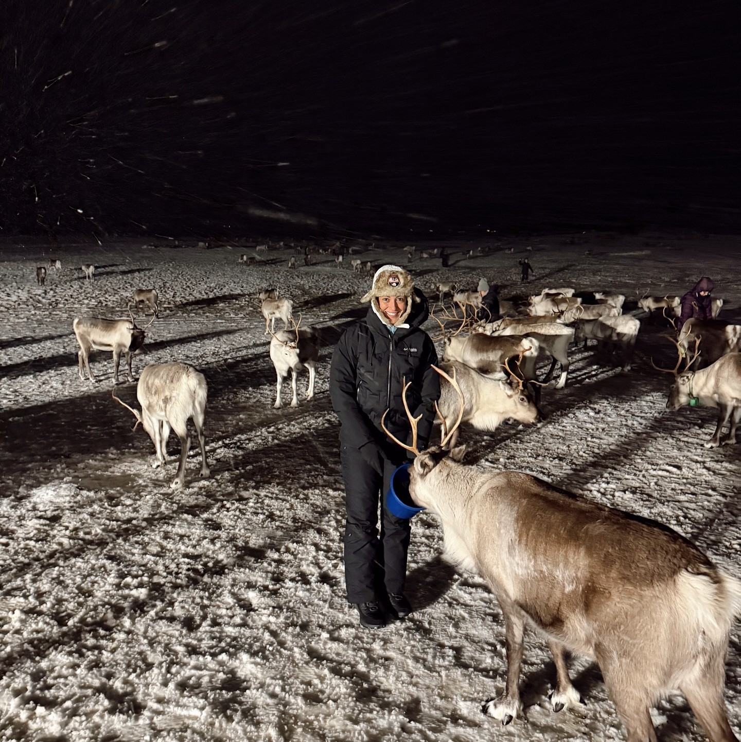 Τέλος, φωτογραφήθηκε με ένα κοπάδι από ταράνδους, ενώ παράλληλα απόλαυσε ζεστή σοκολάτα και συνομίλησε με τους γηγενείς, προκειμένου να μάθει για τον πολιτισμό τους και την κουλτούρα τους. Στη λεζάντα της τελευταίας ανάρτησής της έγραψε: «Τι πάει να πει pure arctic life; Τάρανδοι, τάισμα, έλκηθρα, κρύο, χιονοθύελλα, φωτιά στο Lavvo και σούπα και ζεστή σοκολάτα αλλά πιο πολύ απ’ όλα οι γηγενείς και η κουλτούρα τους.»