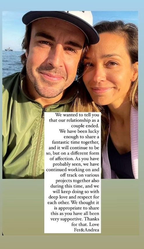 Ο Fernando Alonso αιφνιδίασε τους ακολούθους του με την ανακοίνωση για τον χωρισμό του από τη σύντροφό του και δημοσιογράφο, Andrea Schlager, έπειτα από περίπου έναν χρόνο σχέσης.