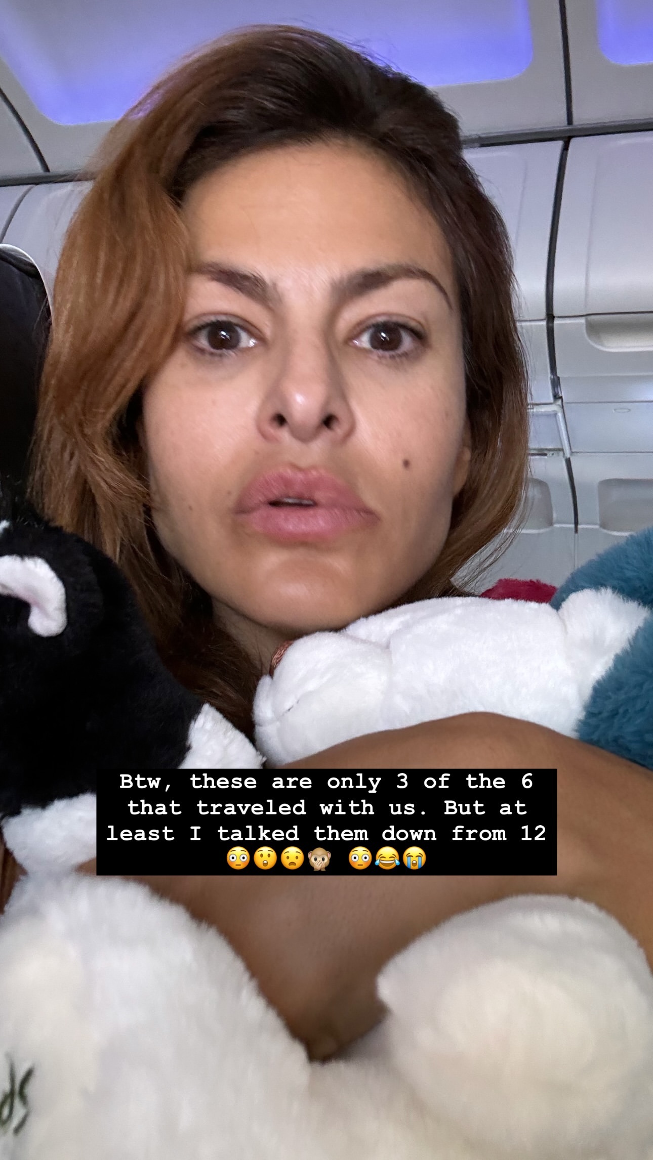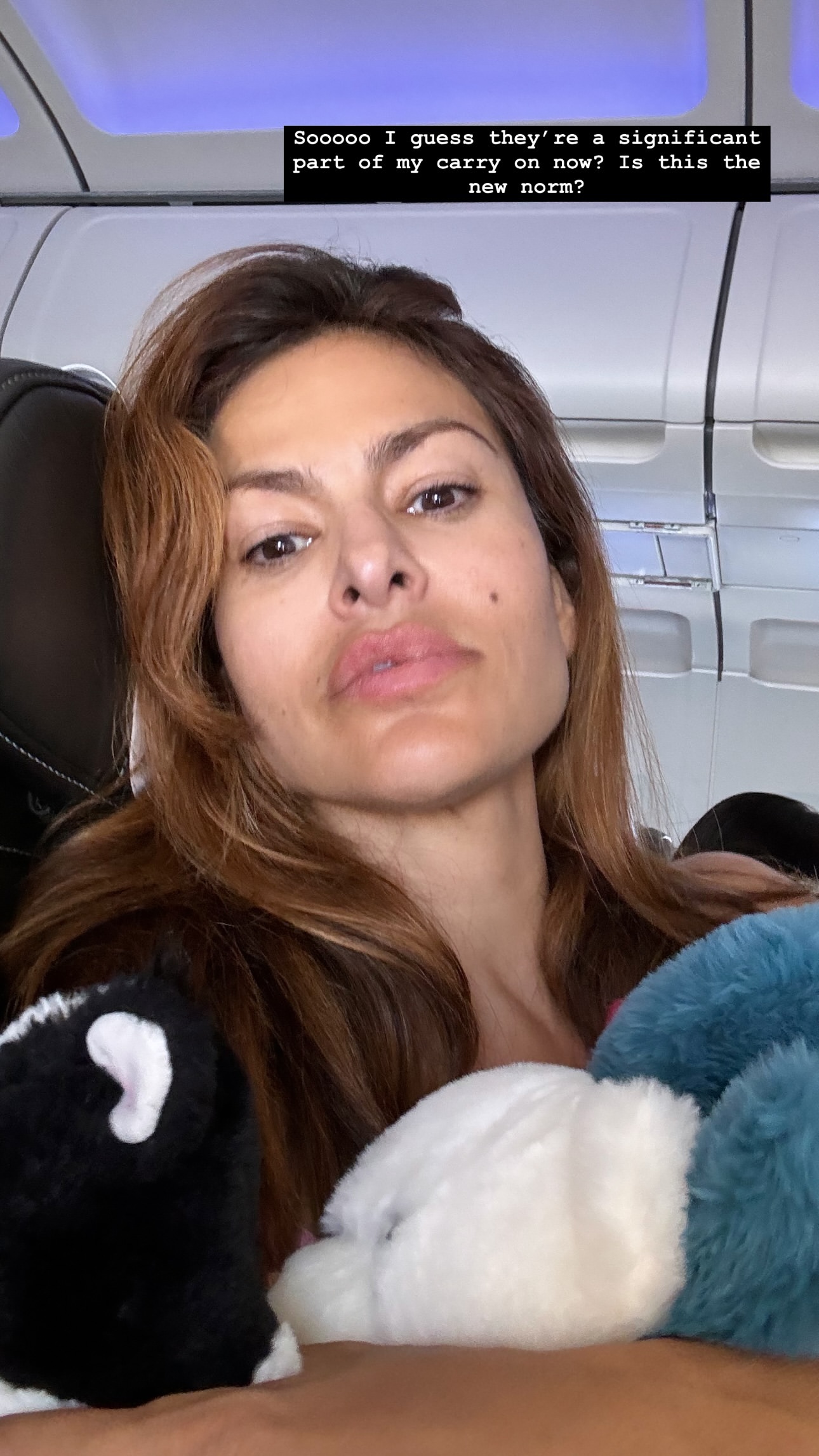 «Sooooo υποθέτω ότι είναι ένα σημαντικό μέρος της χειραποσκευής μου τώρα; Είναι αυτός ο νέος κανόνας;» έγραψε η Mendes με χιουμοριστική διάθεση πάνω σε μια εικόνα που μοιράστηκε στα Instagram Stories της την Τρίτη 20 Αυγούστου. Η selfie έδειχνε τη μητέρα δύο παιδιών να κάθεται σε ένα αεροπλάνο κρατώντας τα λούτρινα ζωάκια των παιδιών της.