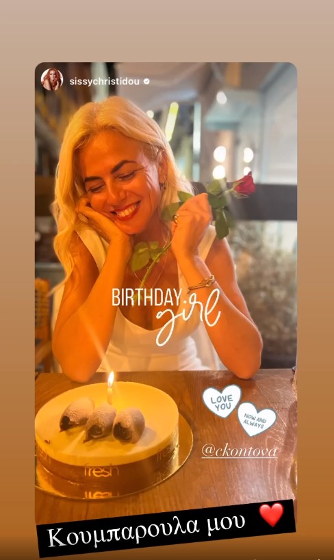 Σε βίντεο που ανέβασε η κουμπάρα της Σίσσυ Χρηστίδου και η φίλη της Έβελυν Καζαντζόγλου, ακούγεται κάποιος να λέει “η Χριστίνα έχει πάντα δίκιο” με τον Τζώνη Καλημέρη να παρεμβαίνει και να λέει με χιούμορ: “Εκτός αν είμαι μπροστά εγώ” και να αφήνει ένα τρυφερό φιλί στα χείλη της αγαπημένης του.