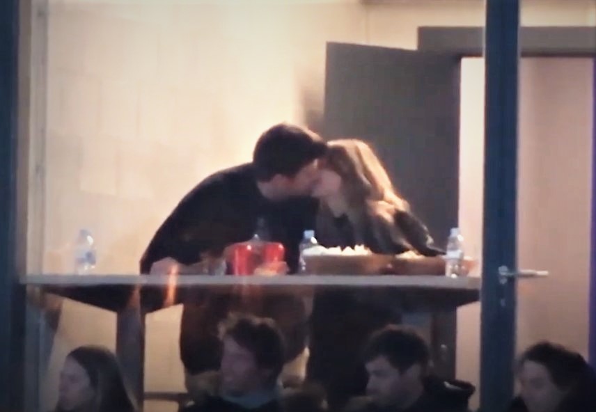 To ζευγάρι παρακολουθούσε τον αγώνα της ομάδας του Piqué, FC Andorra, με τις κάμερες να απαθανατίζουν τα τρυφερά τους φιλιά.