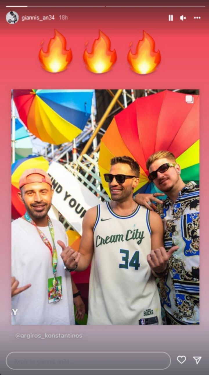Ο Έλληνας σούπερ σταρ του NBA , ο οποίος δημοσίευσε τη σχετική φωτογραφία μέσω Instastory και εξέφρασε με τον δικό του τρόπο τον θαυμασμό του για τον Κωσνσταντίνο Αργυρό, με τρία εικονίδια με φωτιές πάνω από την εικόνα.