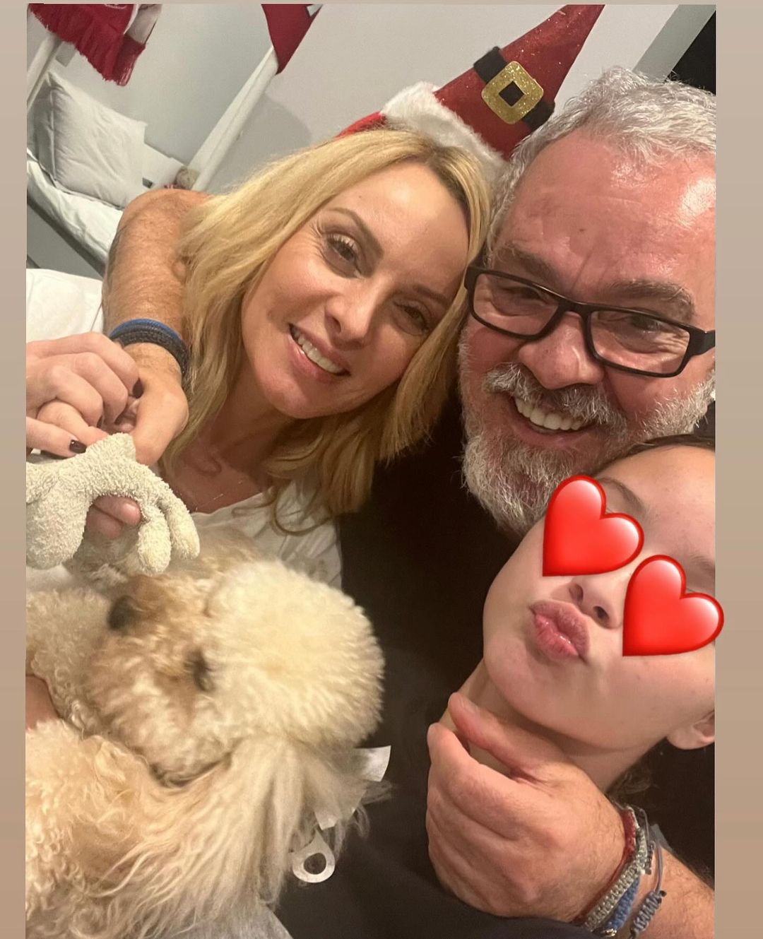 Συγκεκριμένα η Πέγκυ Ζήνα δημοσίευσε στον προσωπικό της λογαριασμό στο Instagram μια φωτογραφία, όπου η ίδια και η κόρη τους, Ηλέκτρα, δίνουν τρυφερά φιλιά στο μάγουλο του Γιώργου Λύρα, ο οποίος ποζάρει χαμογελαστός κρατώντας στην αγκαλιά του το σκυλάκι τους.