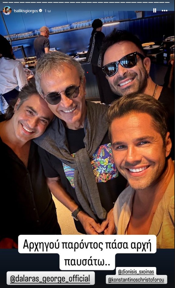 Ο Γιώργος Τσαλίκης είναι ιδιαίτερα ενεργός στα social media και συχνά μοιράζεται με τους διαδικτυακούς της φίλους στιγμές από την επαγγελματική και προσωπική του ζωή. Αυτή τη φορά ο τραγουδιστής εξέπληξε τους θαυμαστές της, καθώς δημοσίευσε σε Insta Story μια σπάνια φωτογραφία, στην οποία ποζάρει μαζί με τρεις συναδέλφους του.