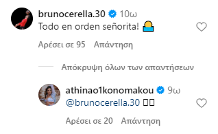 Ερωτευμένη ξανά είναι η Αθηνά Οικονομάκου μετά το διαζύγιό της και δεν το κρύβει. Ο άνδρας που έχει κλέψει την καρδιά της είναι ο Bruno Cerella, ένας 37χρονος Ιταλοαργεντινός μπασκετμπολίστας, που ασχολείται επίσης με real estate ενώ είναι και συνιδιοκτήτης προπονητικού κέντρου.