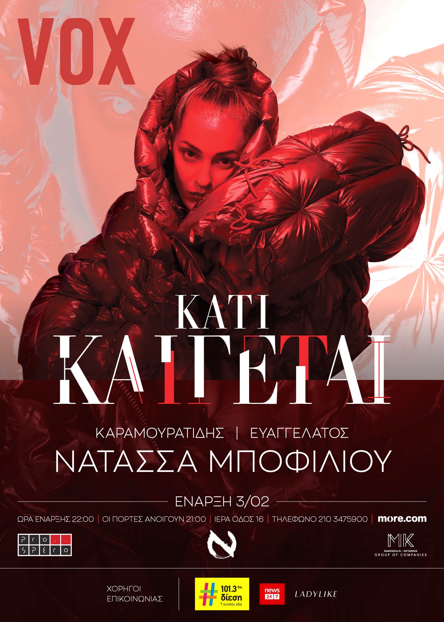 Τέσσερα χρόνια μετά την Εποχή του Θερισμού και τις μεγάλες συγκινήσεις που προσέφερε, η Νατάσσα Μποφίλιου επιστρέφει στο VOX, μπαίνει σε νέα φλεγόμενη τροχιά και παρουσιάζει με ενθουσιασμό τα πολυαναμενόμενα ολοκαίνουργια τραγούδια που έφτιαξαν για εκείνη ο Θέμης Καραμουρατίδης και ο Γεράσιμος Ευαγγελάτος.