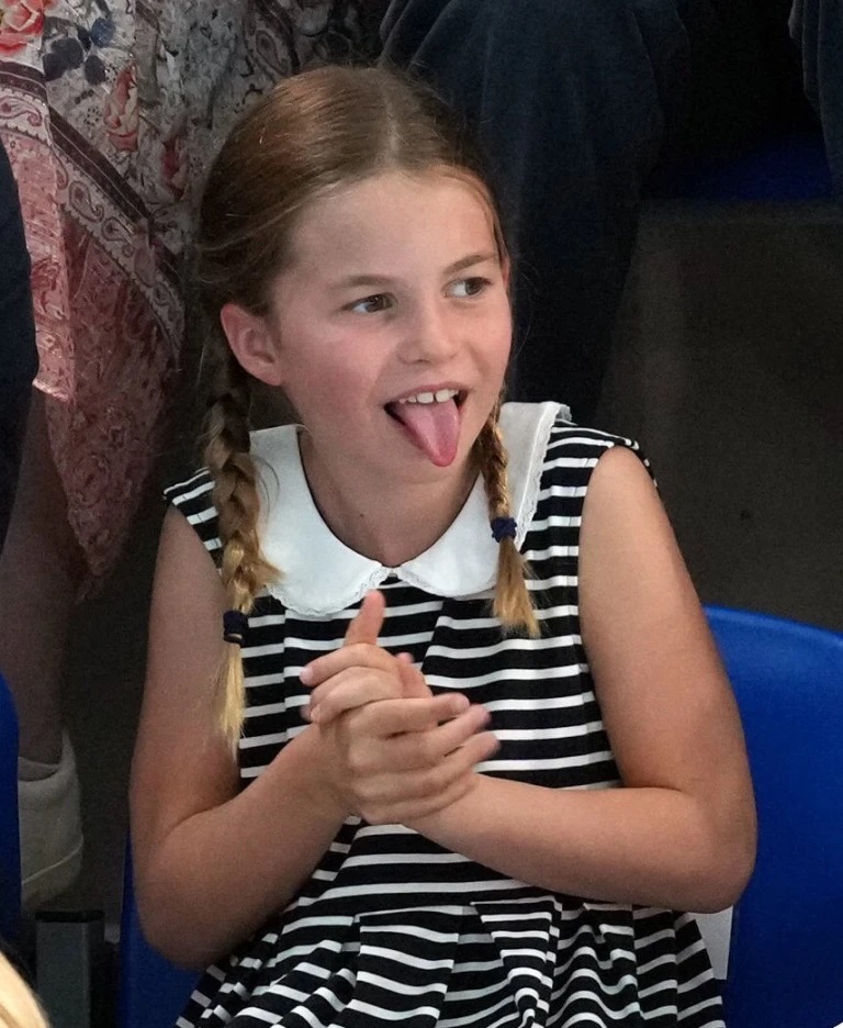 Όπως και στο Πλατινένιο Ιωβηλαίο η πάντα εκφραστική και αυθόρμητη Charlotte χειροκροτούσε κατενθουσιασμένη, έβγαζε τη γλώσσα της, ξεφυσούσε σε στιγμές αθλητικής δράσης.