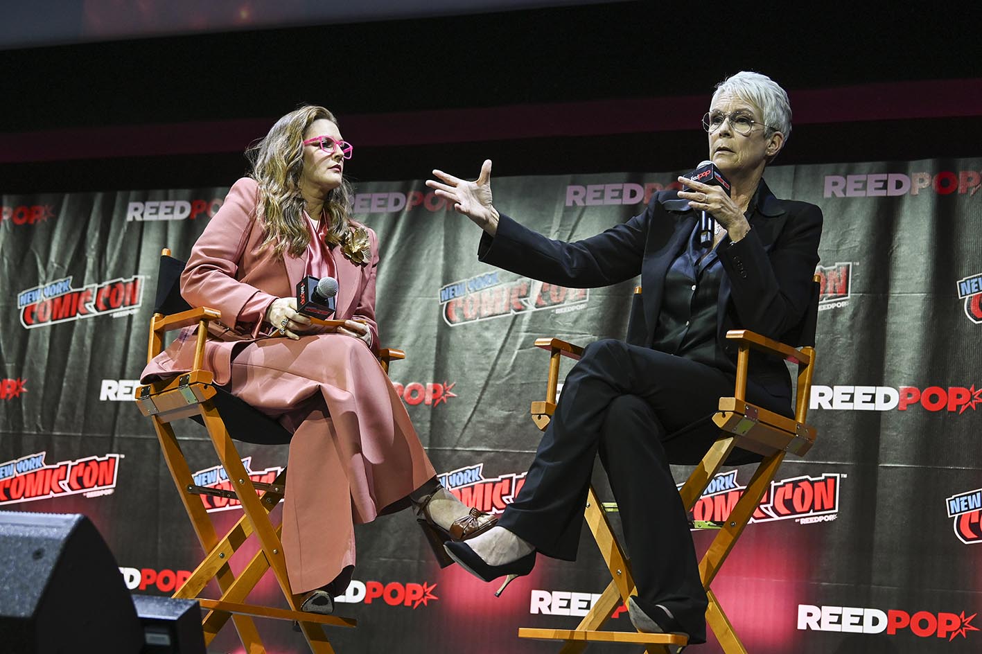 Η Drew Barrymore και η Jamie Lee Curtis παρευρέθηκαν στην παρουσίαση της ταινίας "Halloween Ends" από τη Universal Pictures κατά τη διάρκεια του φεστιβάλ Comic Con στη Νέα Υόρκη. Photo by Slaven Vlasic/Getty Images for Universal Pictures