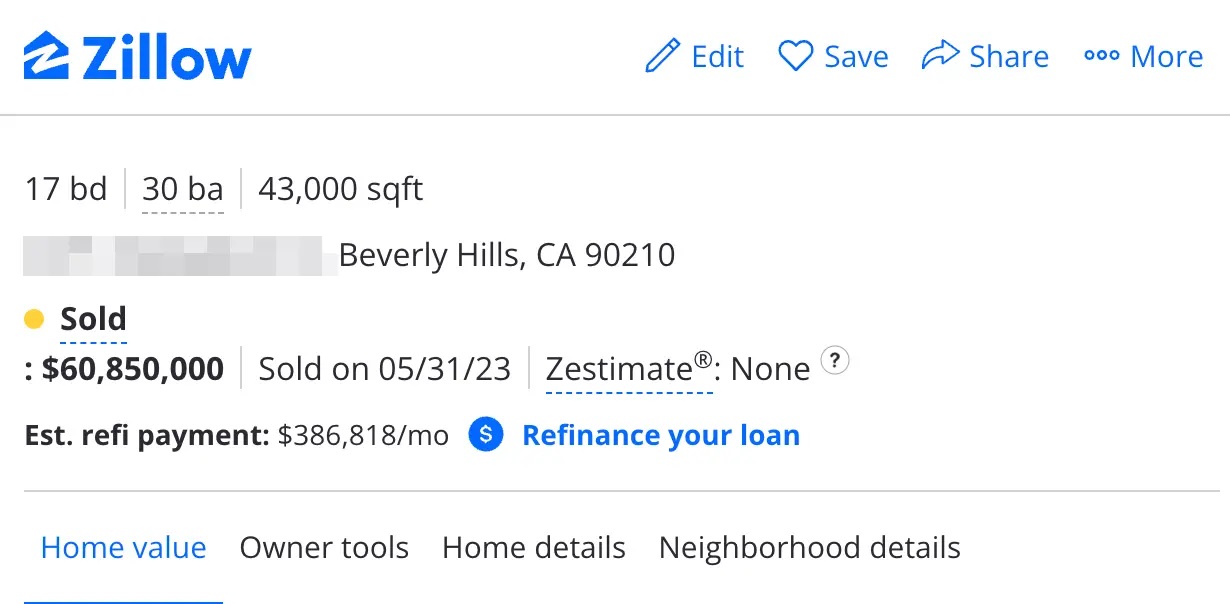 H εφημερίδα ανέφερε ότι οι νέες φωτογραφίες από το εσωτερικό του πολυτελούς σπιτιού ανέβηκαν στην ιστοσελίδα την 1η και την 5η Ιουνίου, ωστόσο, η έπαυλη εξακολουθεί να αναφέρεται ως πωλημένη, με την Daily Mail να ανεβάζει στιγμιότυπο από το site του Zillow.