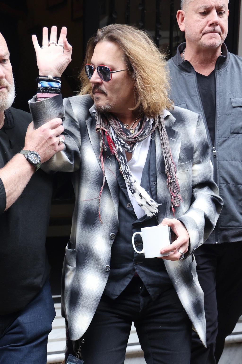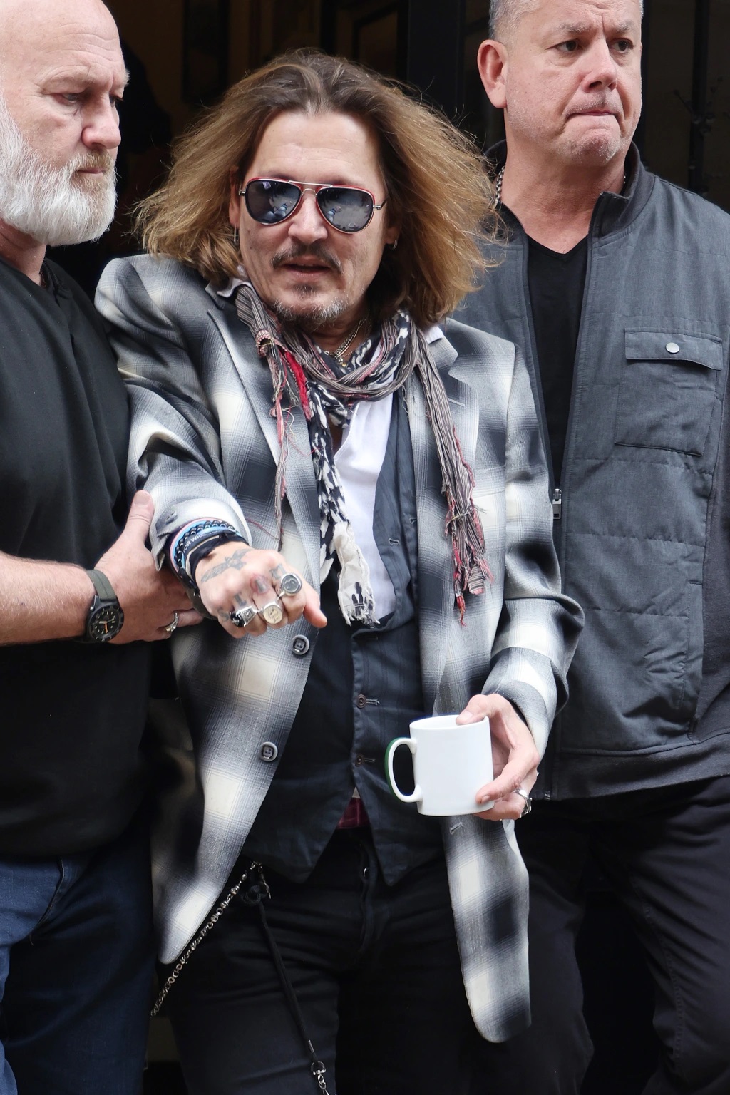Viral έχουν γίνει οι φωτογραφίες του Johnny Depp να βγαίνει από το ξενοδοχείο στο Μπέρμιγχαμ συνοδεία ανδρών ασφαλείας κρατώντας μια κούπα καφέ στο χέρι.