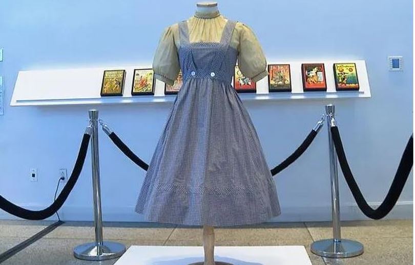 Η Garland φορούσε πολλές εκδοχές του μπλε και λευκού gingham φορέματος κατά τη διάρκεια των γυρισμάτων της κλασικής ταινίας του 1939, αλλά μόνο τέσσερις υπάρχουν – και αυτό το συγκεκριμένο είναι ένα από τα δύο που έχουν λευκή μπλούζα.
