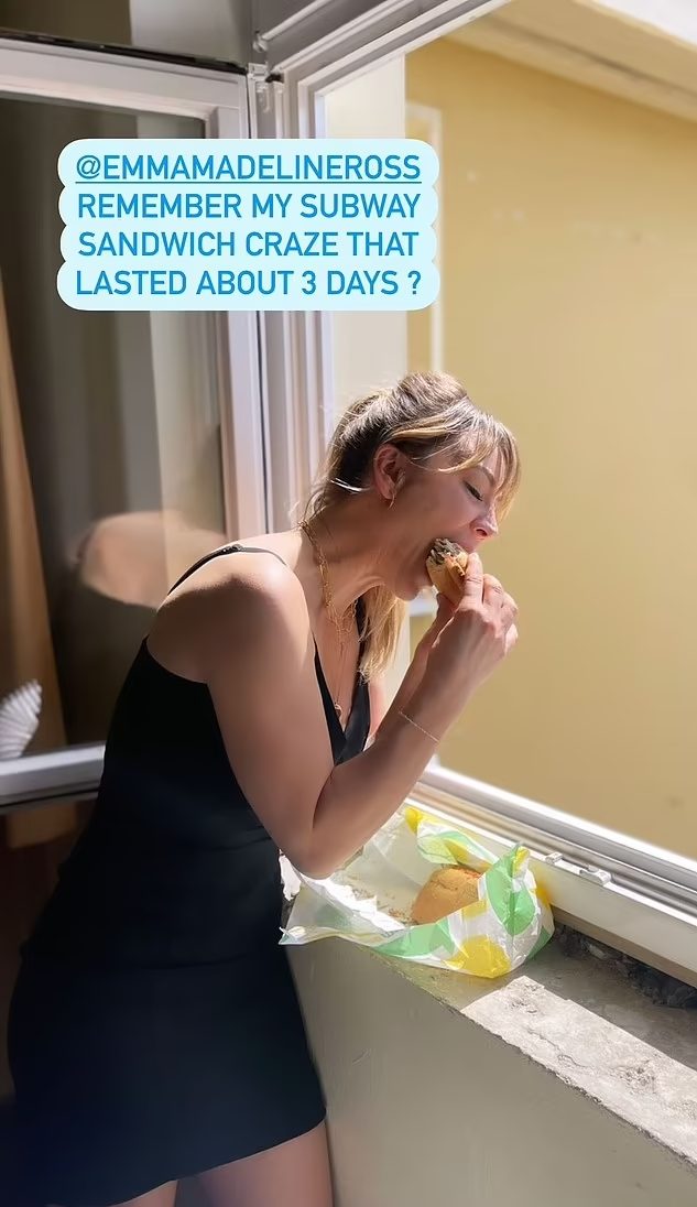 «Θυμάστε την τρέλα μου με τα σάντουιτς που κράτησε περίπου 3 ημέρες;» έγραψε σε άλλη pic.