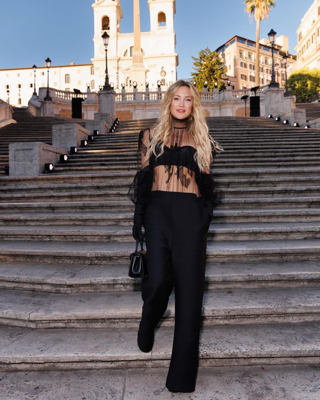 Δεν παρέλειψε δε να βγάλει και την κλασική φωτογραφία στα σκαλιά της Piazza di Spagna στα οποία πραγματοποιήθηκε και το runway.