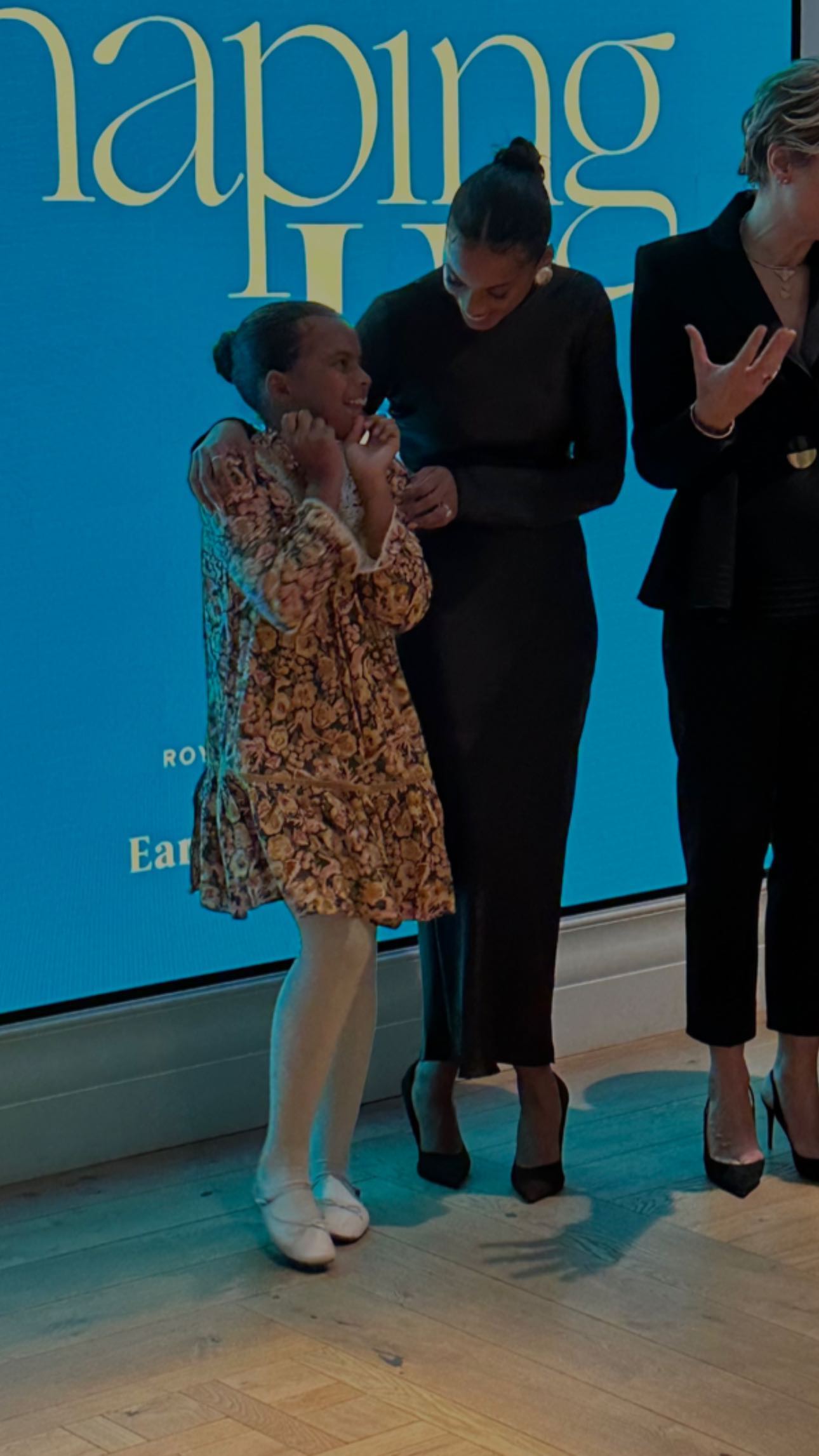 Η Alaia-Mai φαίνεται να τσιρίζει από χαρά και να συγκρατεί το χοροπηδητό της μετά τη χειραψία με την Kate Middleton, δείχνοντας ξετρελαμένη από τη συνάντηση με την πριγκίπισσα.