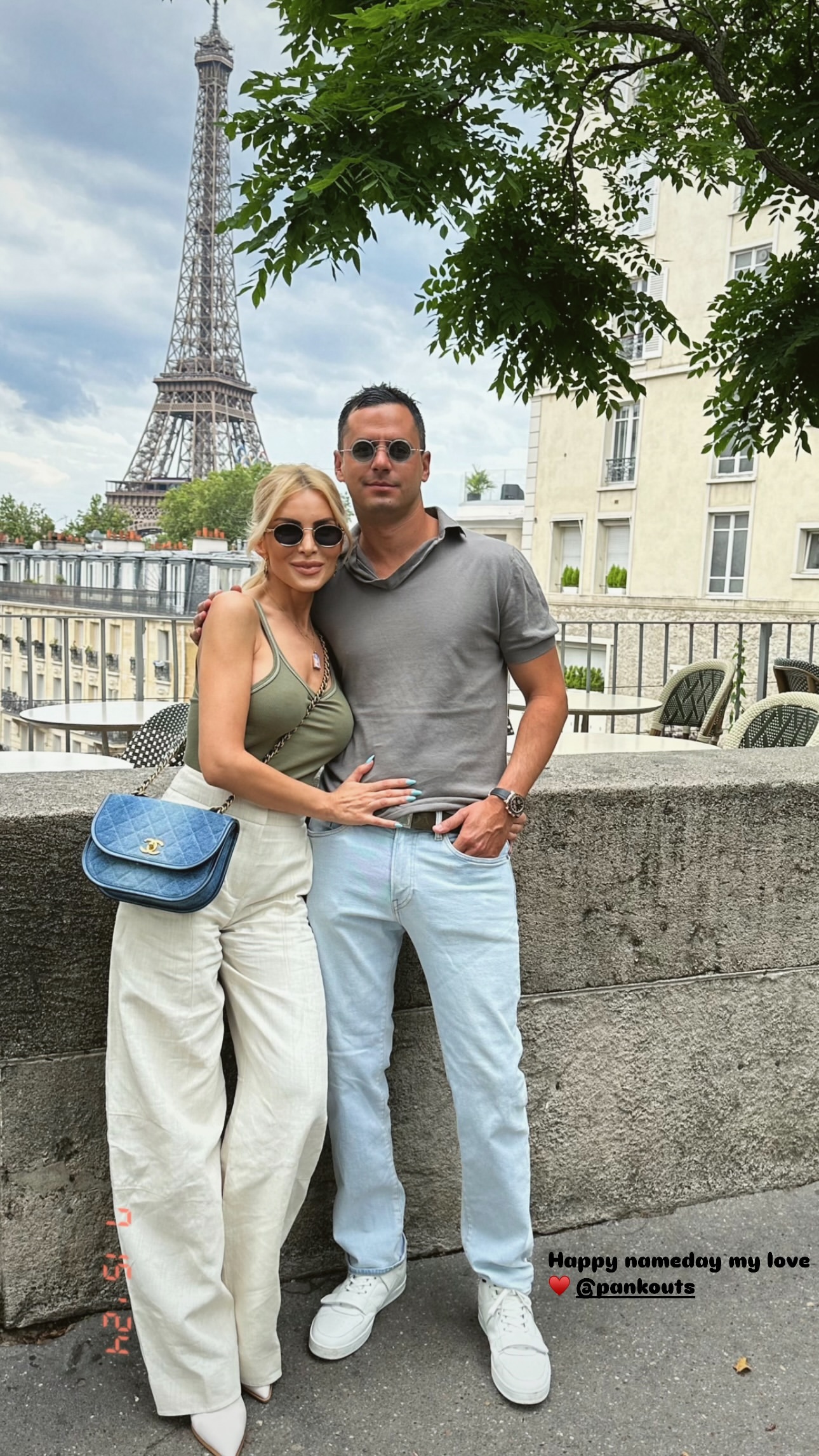Σήμερα, με αφορμή την ονομαστική γιορτή του επιχειρηματία, η Κατερίνα Καινούργιου δημοσίευσε στον προσωπικό της λογαριασμό στο Instagram μία νέα φωτογραφία του ζευγαριού από το ταξίδι του στο Παρίσι και ευχήθηκε: «Χρόνια πολλά αγάπη μου».