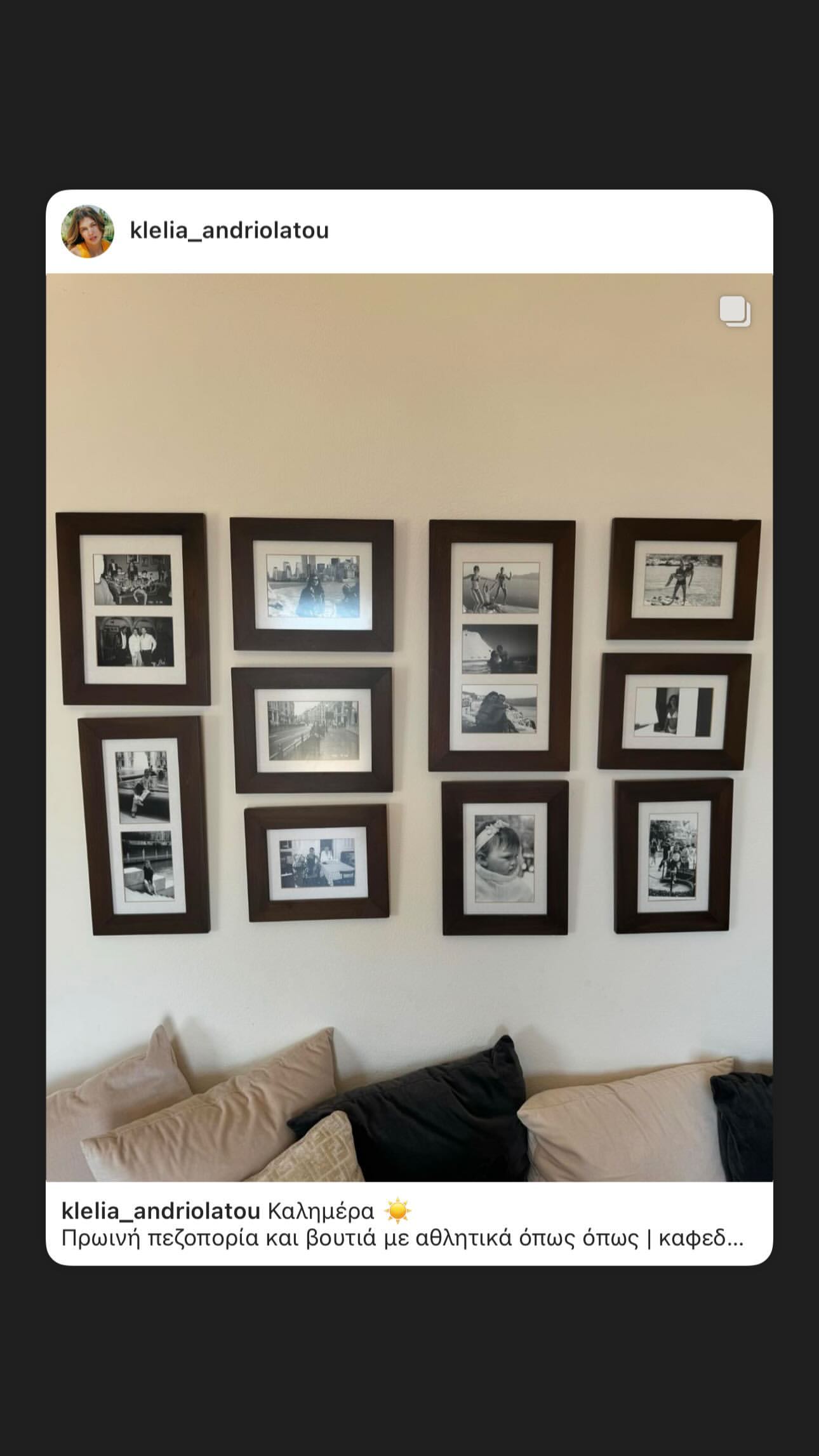 Στη συνέχεια ανάρτησε μια σειρά φωτογραφιών με τα ανίψια της και τα υπόλοιπα μέλη της οικογένειάς της, γράφοντας στη λεζάντα: «Καλημέρα. Πρωινή πεζοπορία και βουτιά με αθλητικά όπως όπως, καφεδάκι και φρέσκος χυμός πορτοκάλι που παίρνει ο μπαμπάς κάθε πρωί, join υπόλοιπο team μαμά και τα δυο αδέρφια μου, παιχνίδι , ζωγραφική και ό,τι σκαρφιστεί η φαντασία των ανιψιών μου, ένα γεια στη γιαγιά και στον παππού που μας φροντίζουν από ψηλά και όλα αυτά πολλά κάδρα της ζωής μας. Έτσι είναι στο χωριό μου, το πιο αγαπημένο καλημέρα!»