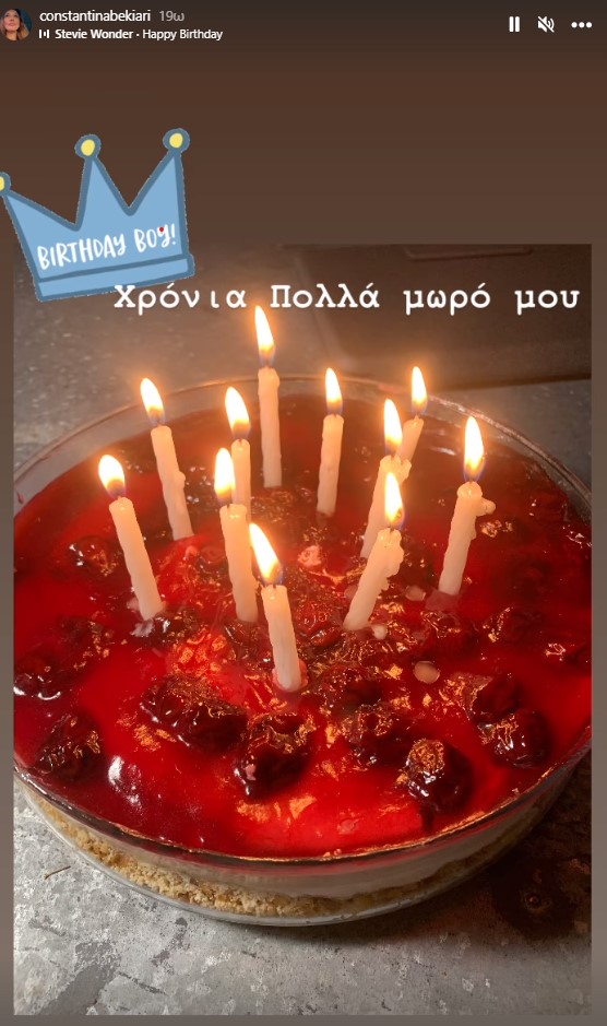 Η Κωνσταντίνα Μπεκιάρη ανέβασε σε Insta Story και μια φωτογραφία με την τούρτα cheesecake με τα 11 κεράκια που έσβησε ο Μιχάλης. “Χρόνια πολλά μωρό μου”, έγραψε πάνω στη φωτογραφία.