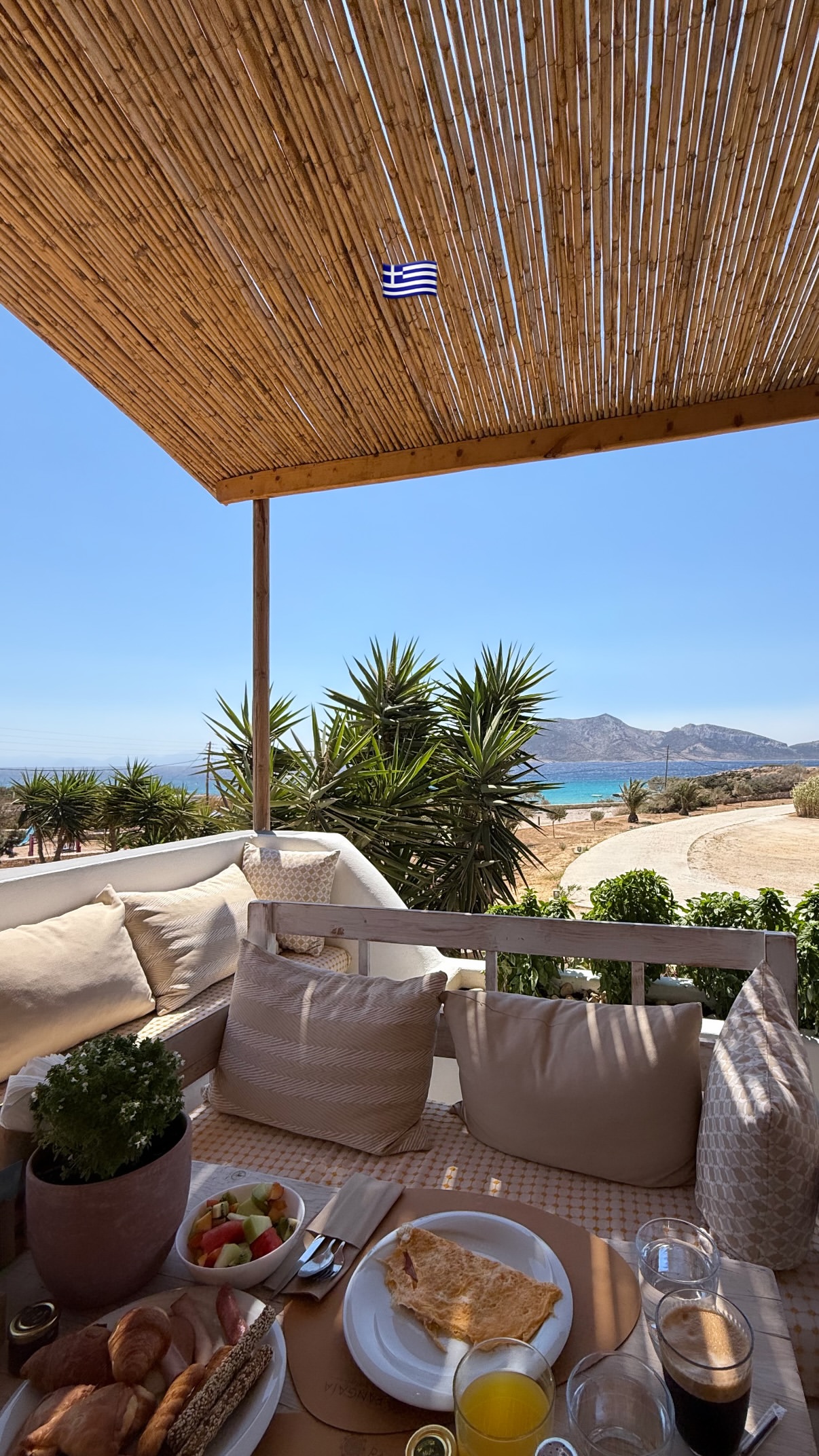 Σε άλλη φωτογραφία, το ζευγάρι απολαμβάνει το πλούσιο πρωινό του στο μπαλκονάκι του δωματίου που ενοικιάζει με θέα τα τιρκουάζ νερά της θάλασσας.
