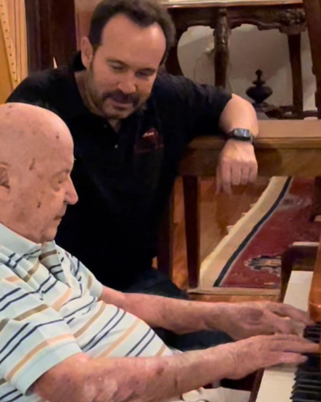 Ο Κώστας Μακεδόνας μοιράστηκε με τους διαδικτυακούς του φίλους φωτογραφίες από τη ξεχωριστή βραδιά που πέρασε την Πέμπτη στο σπίτι του Μίμη Πλέσσα. Ο αγαπημένος τραγουδιστής ανέβασε στον προσωπικό του λογαριασμό στο Instagram στιγμιότυπα με τον 98χρονο σπουδαίο συνθέτη να παίζει πιάνο και εκείνον να τον παρακολουθεί με αγάπη και σεβασμό.