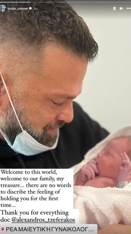 “Καλώς ήρθες στον κόσμο, καλώς ήρθες στην οικογένειά μας, θησαυρέ μου. Δεν υπάρχουν λέξεις να περιγράψεις το συναίσθημα να σε κρατάω για πρώτη φορά. Ευχαριστώ για όλα γιατρέ”, έγραψε ο Κώστας Σόμμερ στη λεζάντα της ανάρτησής του.
